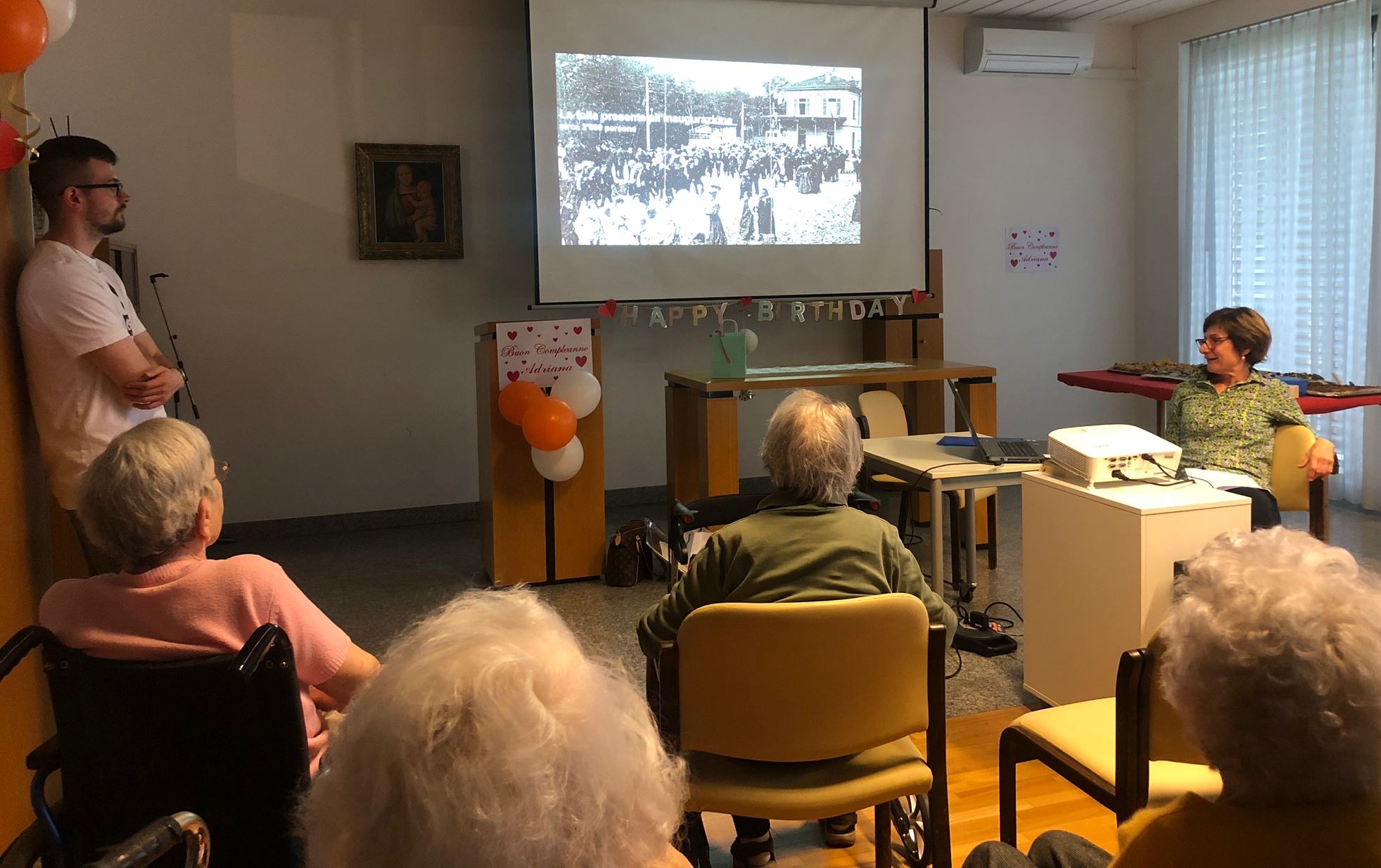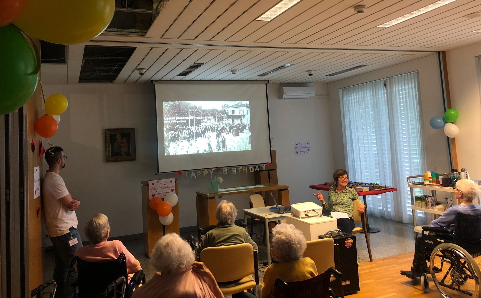 La signora De Luigi ha avuto una festa di Compleanno in cui abbiamo fatto un salto nel passato: abbiamo visto un filmato, narrato dalla cara Raffaella, in cui si ripercorreva la storia del trenino Lugano-Tesserete e di Tranquillo il papà della sig.ra De Luigi che era un chauffeur della ferrovia che collegava la città con la località montana.