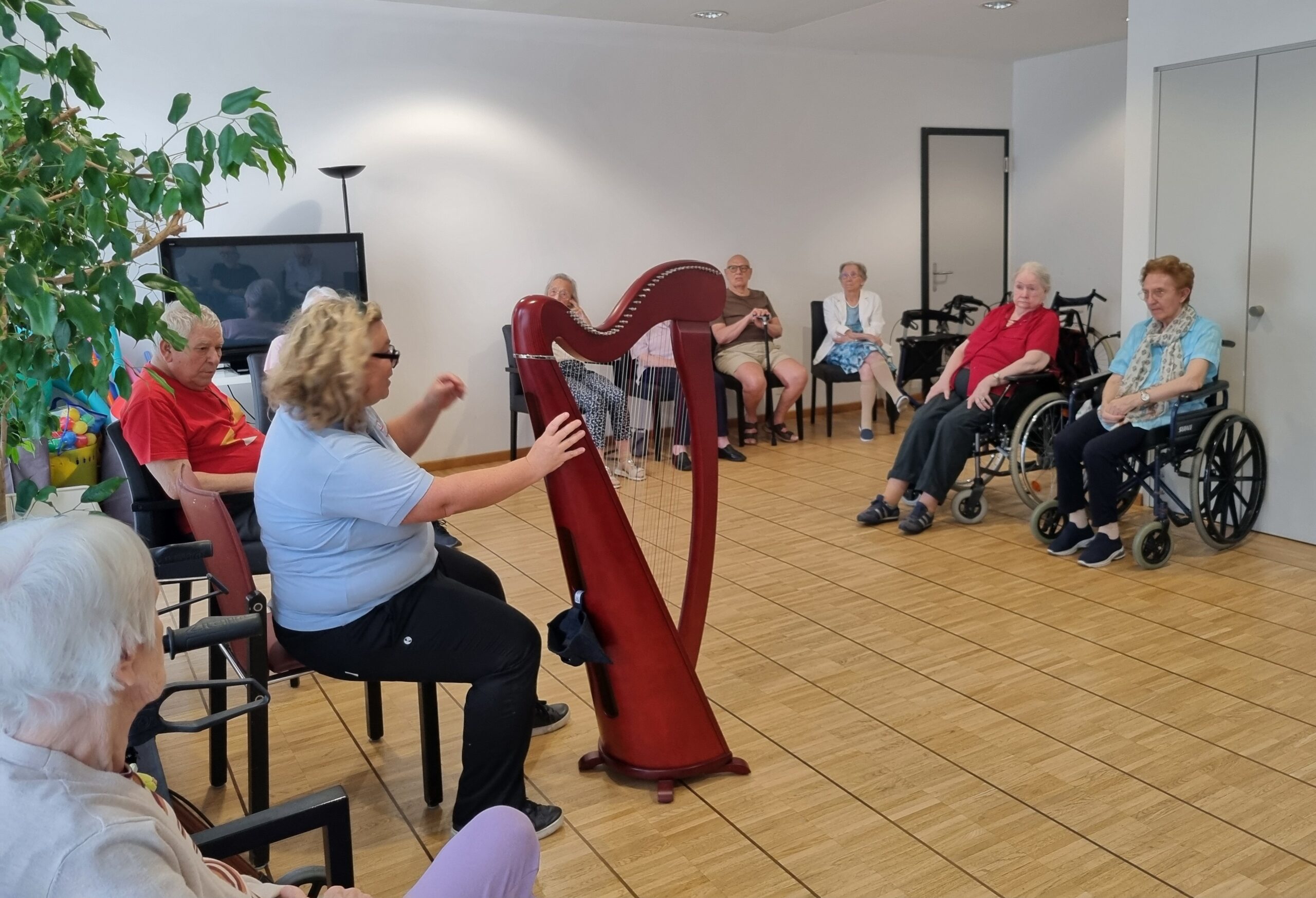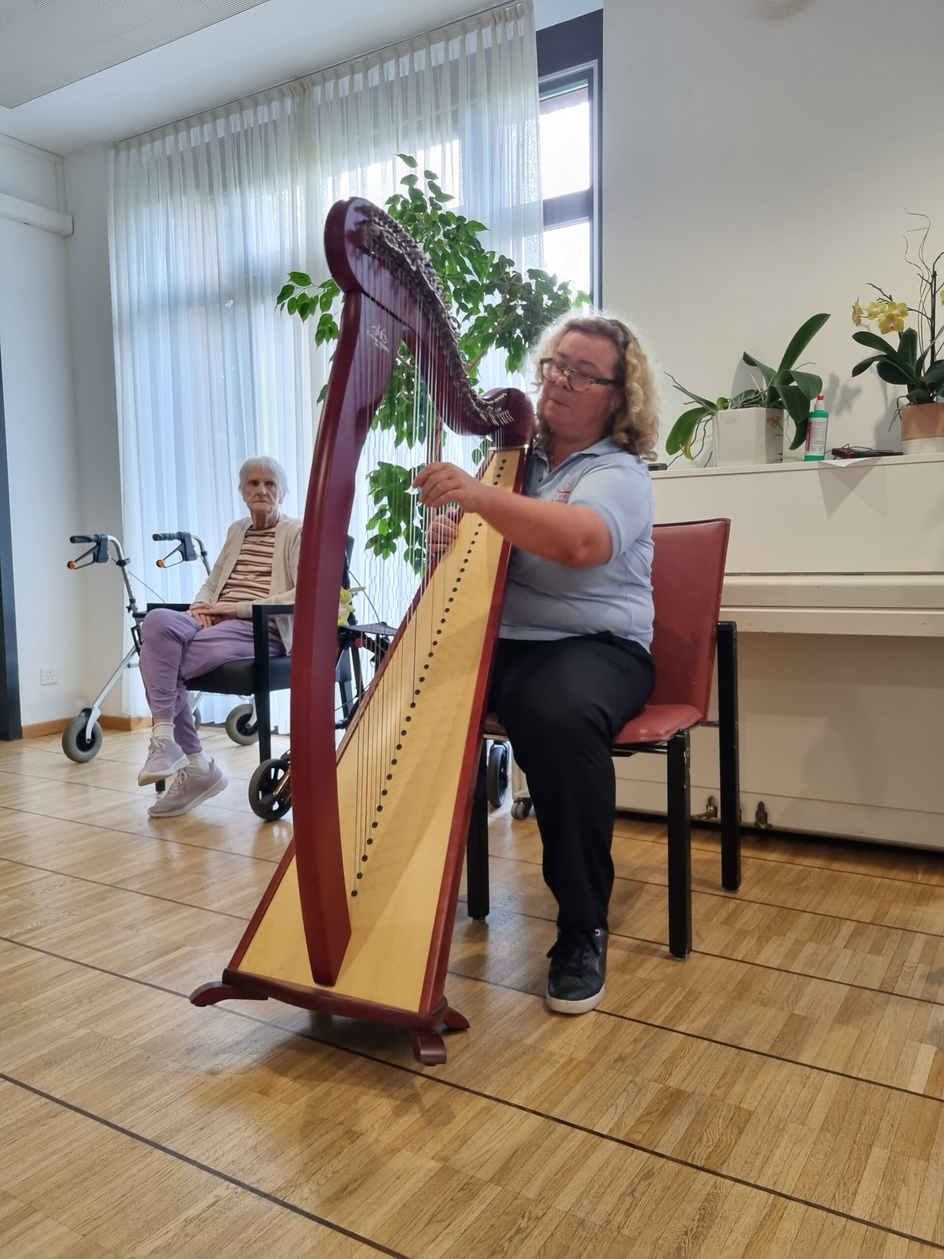 È stata una piacevole serata di incontro dedicato all’arpa celtica, alla sua storia, ai dettagli costruttivi, alle tecniche musicali, all’ascolto di brani e…a provare  a suonarla da parte dei residenti che lo hanno desiderato!